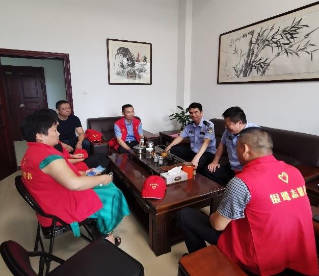 (圖為 翔安交警大隊領(lǐng)導(dǎo)與志愿者們熱烈交談)